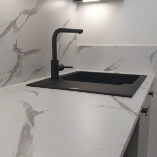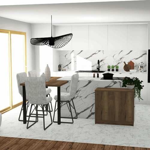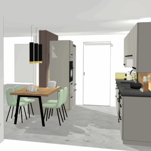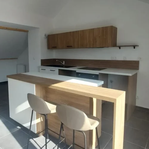 Une cuisine moderne, pratique et harmonieuse, qui apporte du caractère à l’appartement tout en restant facile à vivre pour les futurs locataires.